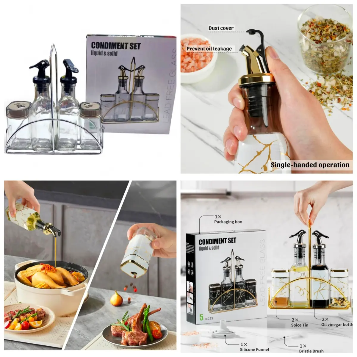 SET DE CONDIMENTOS LIQUIDO Y SOLIDOS 5 PIEZAS EX0210