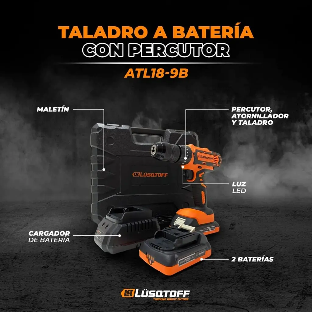 INCLUYE: 2 baterías - Cargador - Maletín - Mechas y puntas - Luz led - Mango antideslizante - Indicador de carga de batería